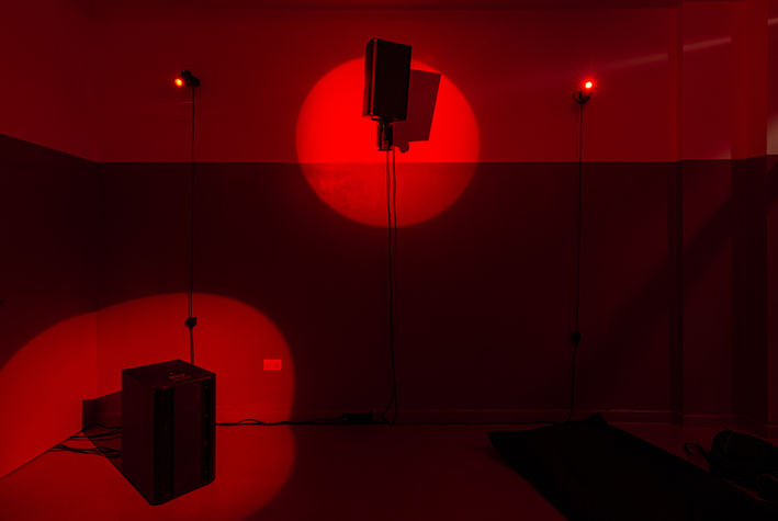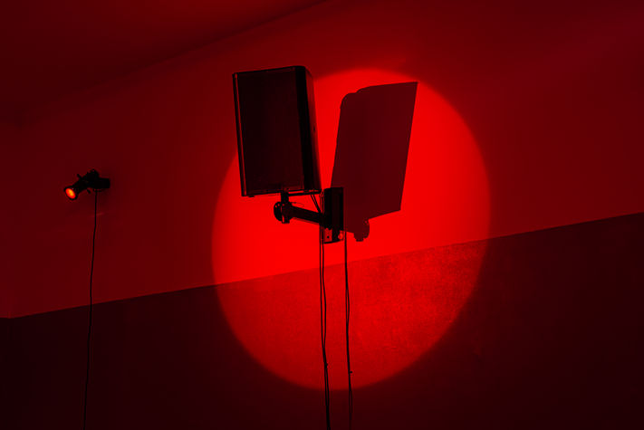 Red light can be used as a tool for improving sleep, reducing stress, and even boosting creativity - its infrasonic frequencies resemble that of airplane engines, crashing waterfalls and live kick drums. Dissecting the legacy of sound as an art practice, the work looks at new platforms of sonic storytelling, focusing on the dynamics of performance in a public space.